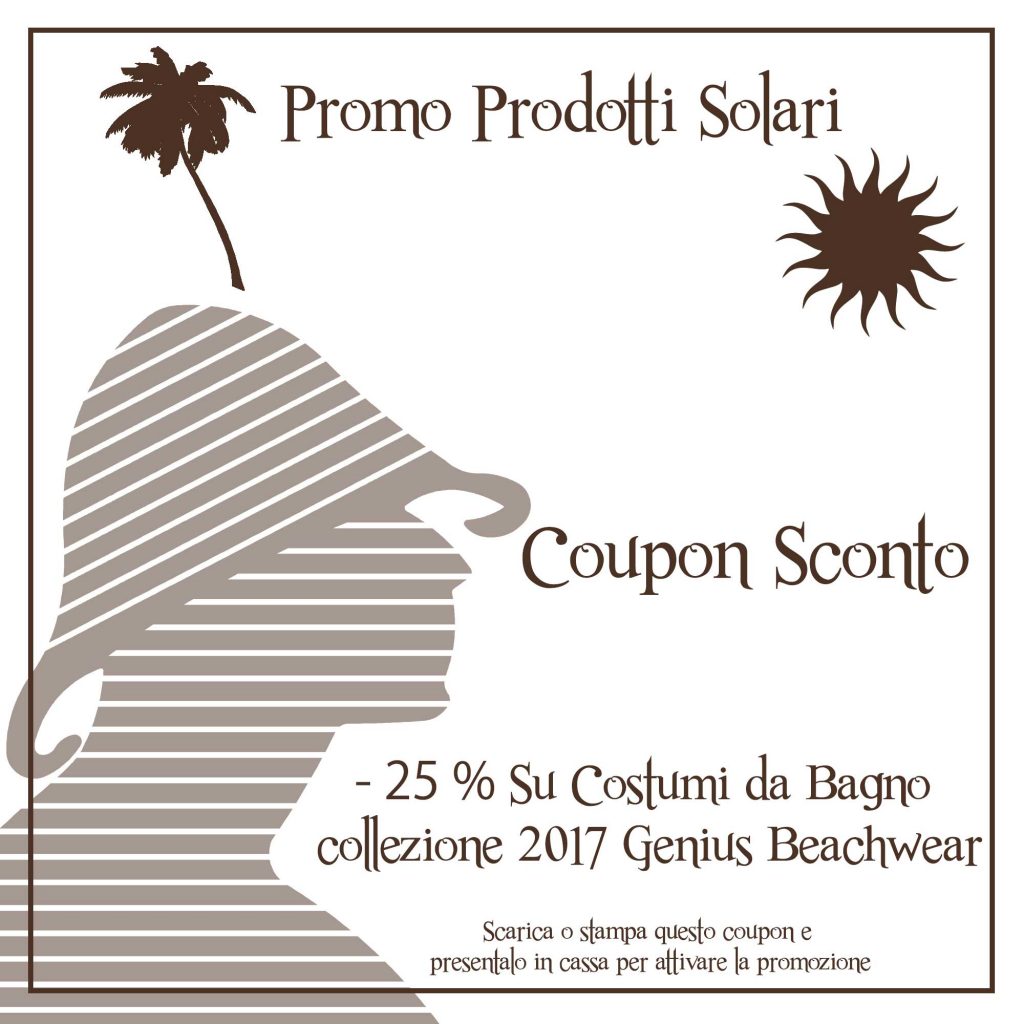 Passa in profumeria e acquistando un prodotto delle linee solari: Clinique – Sisley – Lancome – Sensai – Carita – Clarins, La prairie, La Mer, Lbf; riceverai uno sconto del 25% sui costumi Genius Beachwear.